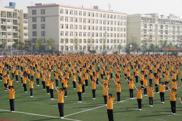 最后是由一千多学生参加的大型广播体操表演,场面宏伟壮观,动作整齐有力,展现了青春的朝气与团结向上的精神面貌,赢得了观众热烈的掌声。
