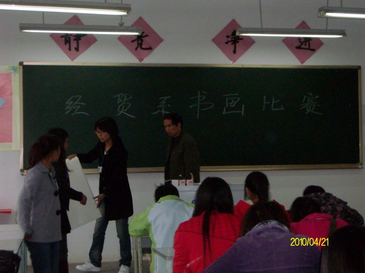 4月21日,经济贸易系团总支学生会在A507教室举办了以“妙笔生辉,共创魅力校园,挥洒美丽人生”为主题的第二届书画比赛。所有参赛作品在经过了严格细致的评选后,共评出特等奖一名、一等奖一名、二等奖两名、三等奖三名。获奖作品将被推荐参加校级大赛。