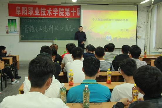 5月10日晚,经济贸易系在教学楼A416教室,举办题为营销无止境创业正青春专题讲座,邀请市场营销专业08届毕业生、仁和药业阜阳分公司总经理武云明到校作报告。经济贸易系党总支书记王胜华、市场营销教研室教师和2016、2017级市场营销专业全体学生近120人参加了讲座。