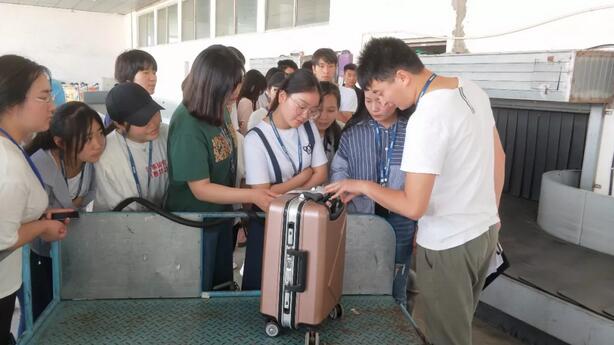 李东阳首先简要介绍了旅客乘机流程和当日观摩学习主要内容。运输部货运室徐功殿、安检站叶霖、行李分拣区分拣员倪凯琪等向同学们详细的介绍了航空货物收运流程,货物安全检查注意事项,行李分拣流程,货物、行李到达提取流程及注意事项等。11点50分,当海口飞机平稳降落,同学们饶有兴趣的观摩了我们货运人员的规范装卸操作流程。全程同学们兴趣高涨,踊跃提问发言,现场工作人员都做了详细讲解。